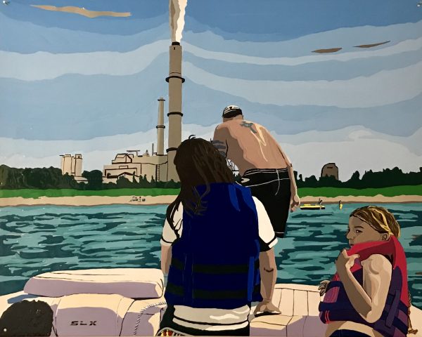 “Friends on a Boat”, 24″x 24″, Oil on Canvas, 2017. Private Collection