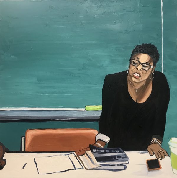 “Sabbatical Sociology Teacher”. Oil on Canvas. 24″ x 24″ 2019