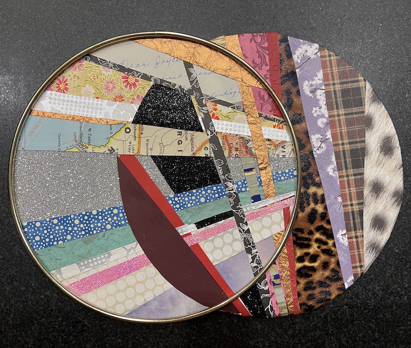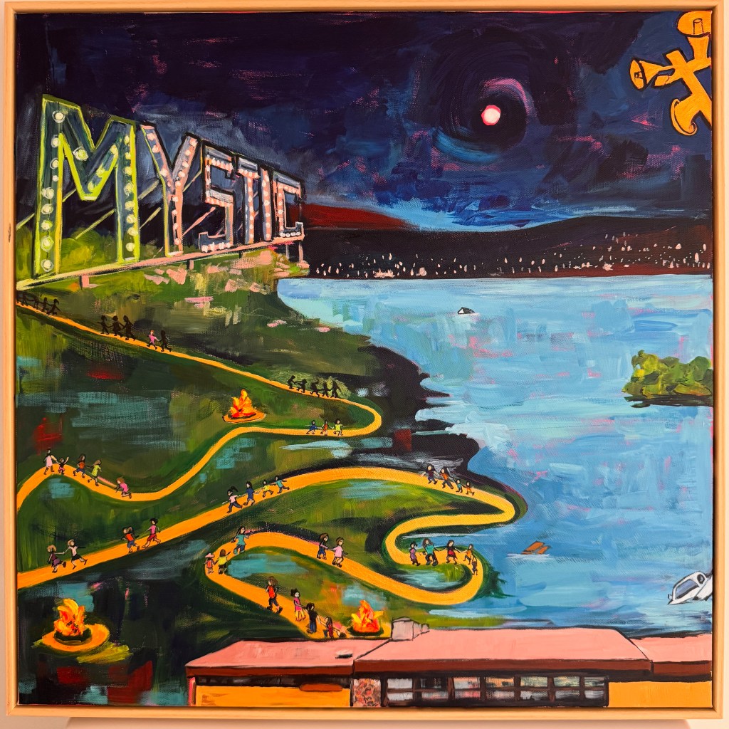 Camp Mystic: Pass It On. 23″ x 23″. Acrylic on Found/Recycled Canvas. 2025