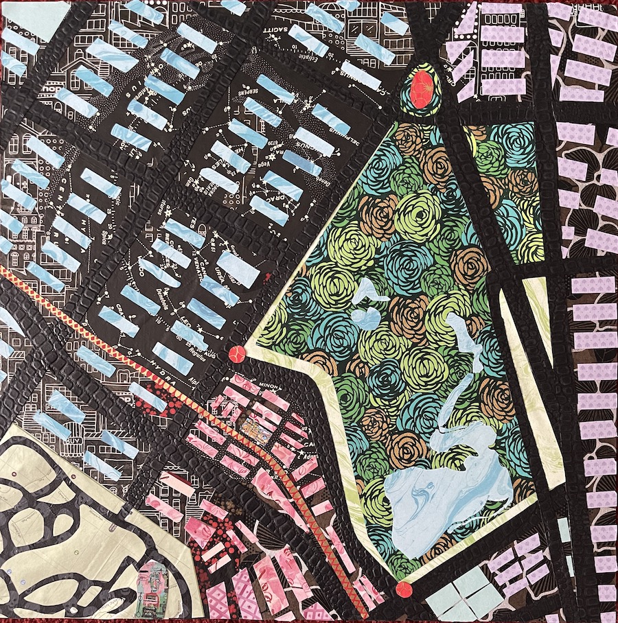 Home. 20″ x 20″. Mixed Media on Wood. 2024. Private Collection