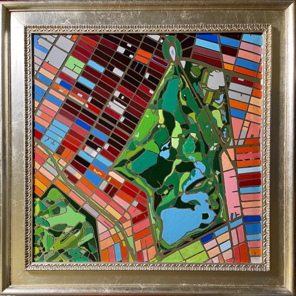 Green-Wood Cemetery, Pink Paths. Oil & Acrylic on Wood. 30″ x 40″. 2020. Private Collection