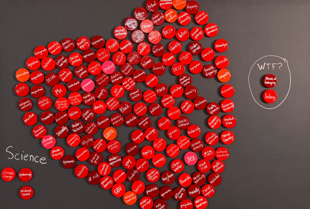 Government Banned Words. Mixed Media: wood, enamel, chalkboard & magnetic paint. 2025