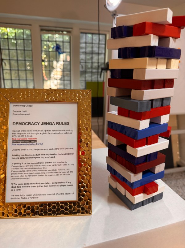 Democracy Jenga. enamel on wood, various sizes, 2025